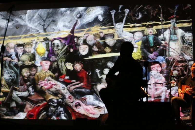 Jacek Bończyk wybrał 16 utworów. Dla przykładu: „Arka Noego” – inspirowana arrasami wawelskimi, „Stańczyk i Rejtan, czyli raport ambasadora” – dziełami Jana Matejki, „Zatruta studnia” i „Wigilia na Syberii” – nawiązujące do obrazów Jacka Malczewskiego oraz „Autoportret Witkacego” – przywołujący płótno Stanisława Ignacego Witkiewicza. Spektakl wieńczy „Alegoria malarstwa”, którą Jacek Kaczmarski napisał rok przed śmiercią. Można więc mówić o dużym spektrum śpiewanej lekcji historii ilustrowanej obrazami. Połowa utworów pochodzi z programu „Muzeum” poświęconego malarstwu polskiemu, a pozostałe to teksty, które powstawały w okresie całej twórczości Kaczmarskiego.