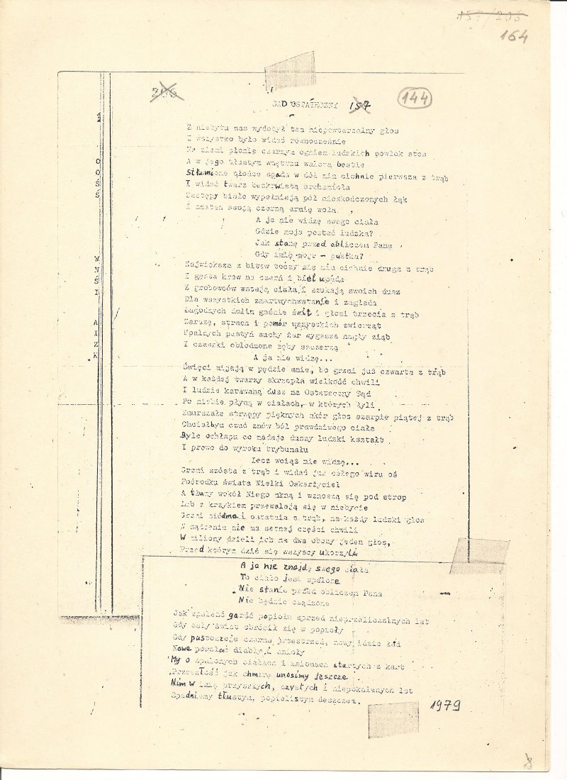 Maszynopis wiersza „Sąd Ostateczny”