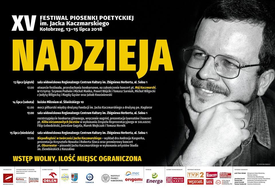 XV edycja Festiwalu Piosenki Poetyckiej im. Jacka Kaczmarskiego „Nadzieja” przeszła już do historii. Od piątku do niedzieli (13-15 lipca 2018) miłośnicy twórczości Jacka Kaczmarskiego, którzy zjechali do Kołobrzegu nie tylko z całego kraju, ale również z zagranicy, przeżywali wspólne święto. W wypełnionej po brzegi sali Regionalnego Centrum Kultury im. Zbigniewa Herberta publiczność mogła najpierw posłuchać konkursowiczów ubiegających się o nagrody m.in. Ministerstwa Kultury i Dziedzictwa Narodowego, Prezesa TVP S.A., Fundacji PZU oraz Fundacji im. Jacka Kaczmarskiego. Jury po przesłuchaniu 16 wykonawców postanowiło przyznać I miejsce duetowi kołobrzesko-gdańskiemu: Joannie Pasternak i Marcinowi Mirowskiemu za wykonanie piosenek: „Joanna d’Arc” (sł. i muz. Jacek Kaczmarski) oraz „Dwoje ludzieńków” (sł. Bolesław Leśmian, muz. Marcin Mirowski).